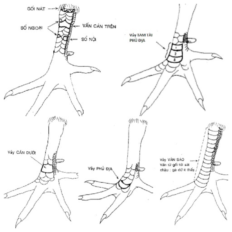 Vảy gà: Bên cạnh dáng mắt, bên trong cuốn kinh kê cũng có đề cập tới vảy gà, nhận diện chiến kê sở hữu đòn đá hay không, đá có đau không và khả năng gây thương tích cho địch thủ như thế nào. Nếu chiến kê của bạn sở hữu các đặc điểm vảy như vảy vấn sáo, vảy khai vương… thì nên tập trung và đầu tư thời gian, cộng với công sức trong chế độ dinh dưỡng và bài tập huấn luyện.