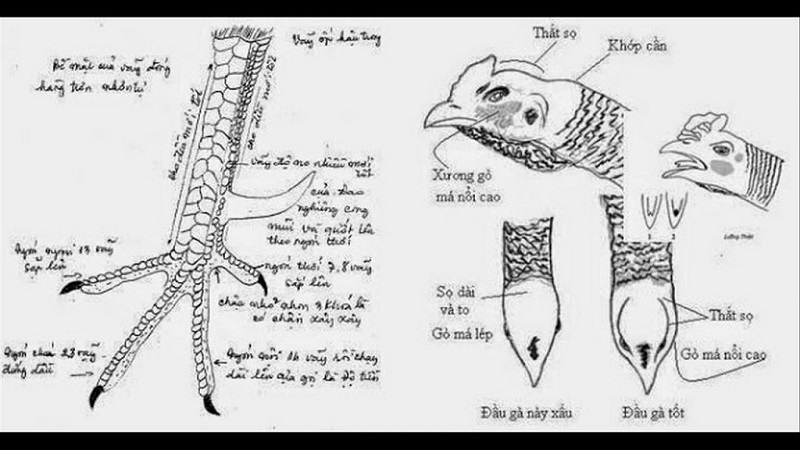 Ví dụ như ở bên trong cuốn kinh kê gà chọi cũng chia sẻ cách nhìn, đoán tướng gà qua các đặc điểm ở ngoại hình. Anh em có thể tham khảo: